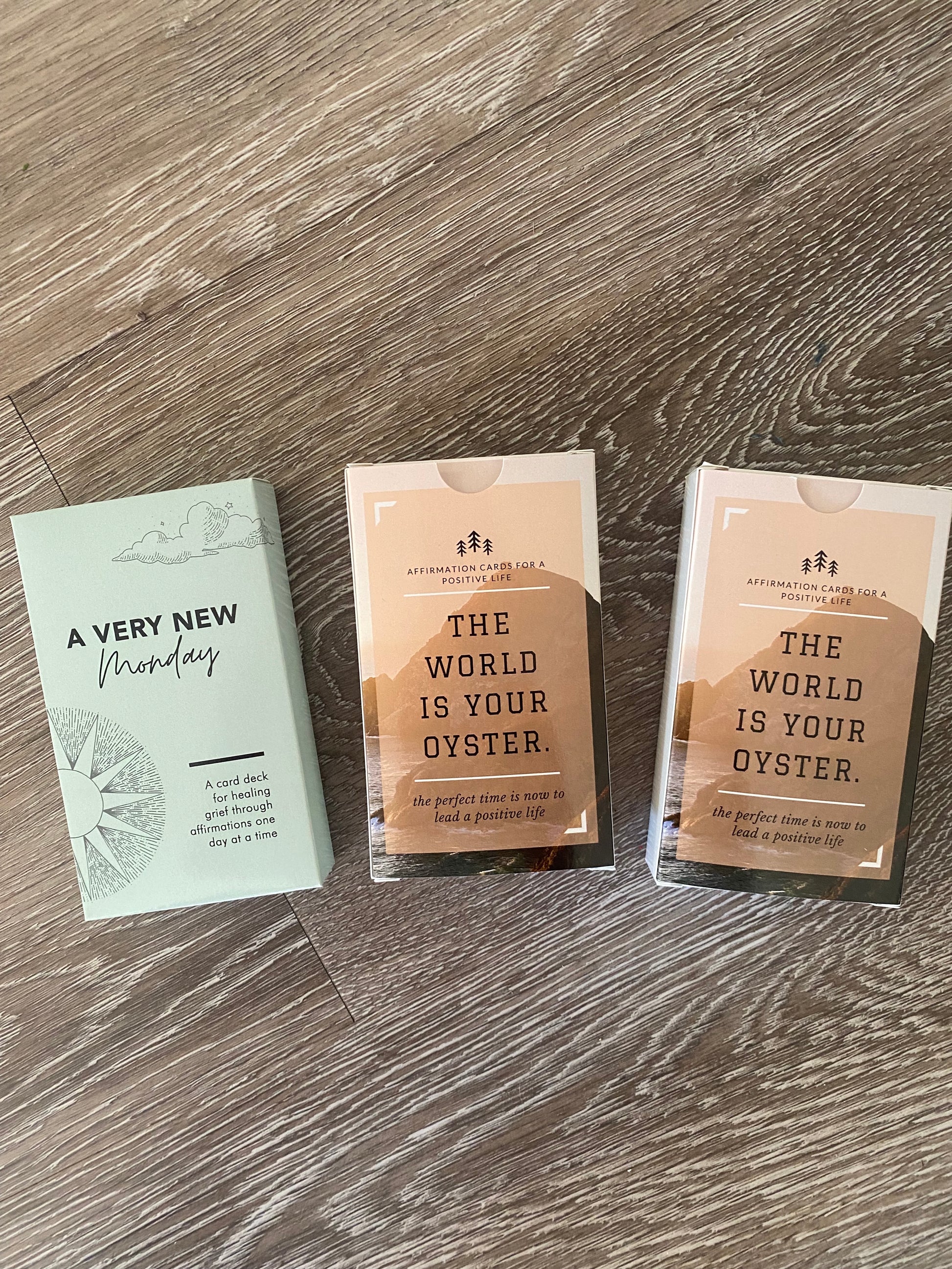 Its a perfect gift to give to those you love and the savings is perfect ! 3 decks of cards are yours to give away. This bundle includes 2 decks of grief affirmation cards and one deck of positive cards. A portion of your three card selection dollars will go to SIDS.